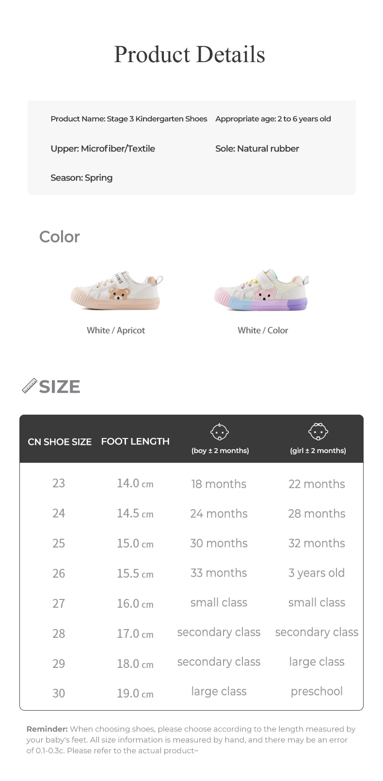 Size: 22 size fits foot length 13.5cm 23 size fits foot length 14.0cm 24 size fits foot length 14.5cm 25 size fits foot length 15.0cm 26 size fits foot length 15.5cm 27 size fits foot length 16.0cm 28 size fits foot length 17.0cm 29 size fits foot length 18.0cm Size 30 fits Foot Length 19.0cm