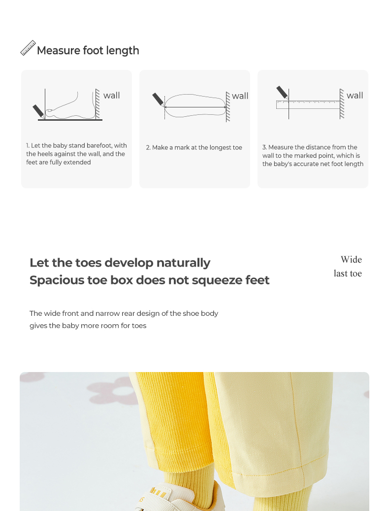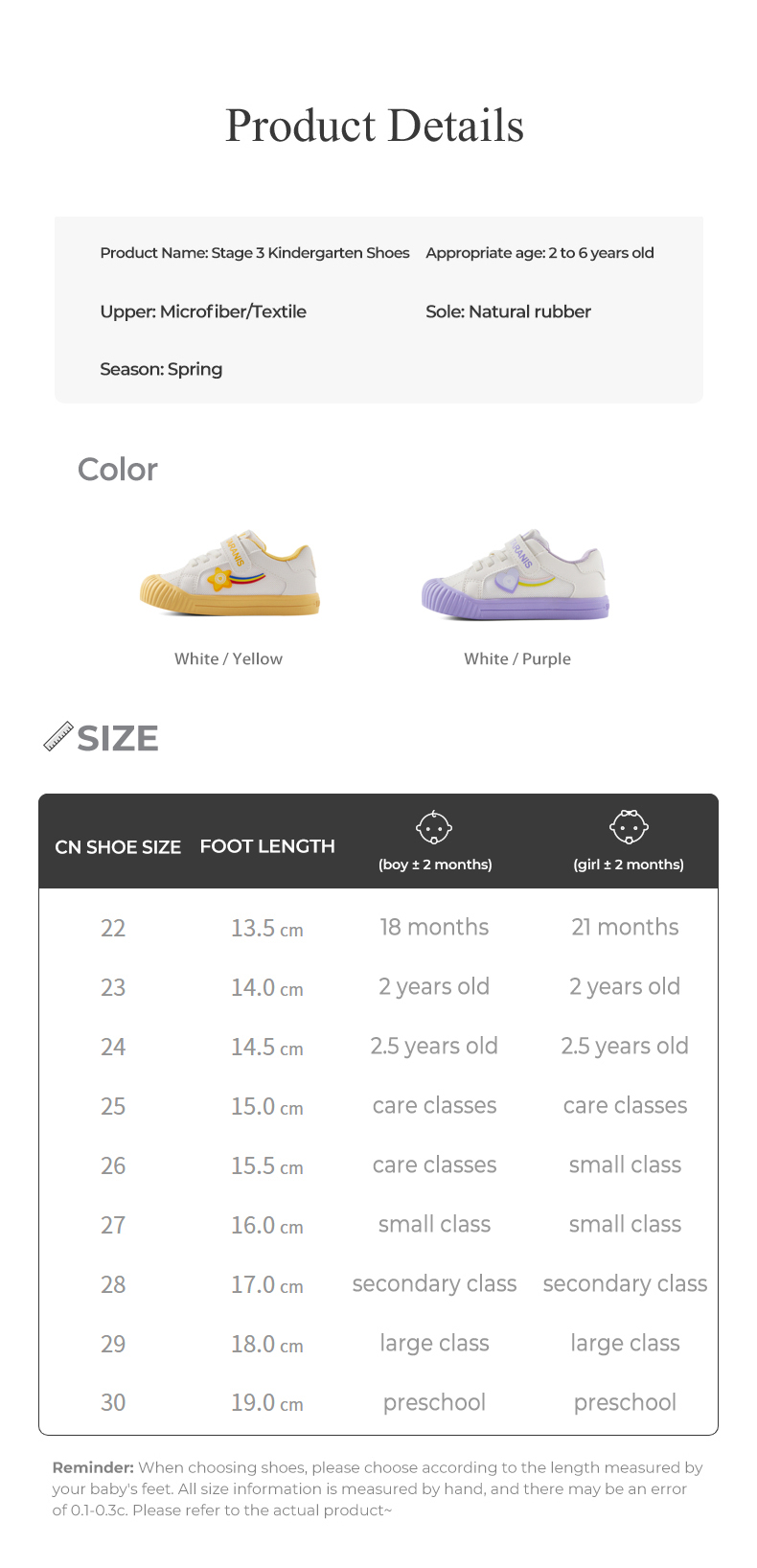 Size: 22 size fits foot length 13.5cm 23 size fits foot length 14.0cm 24 size fits foot length 14.5cm 25 size fits foot length 15.0cm 26 size fits foot length 15.5cm 27 size fits foot length 16.0cm 28 size fits foot length 17.0cm 29 size fits foot length 18.0cm Size 30 fits Foot Length 19.0cm