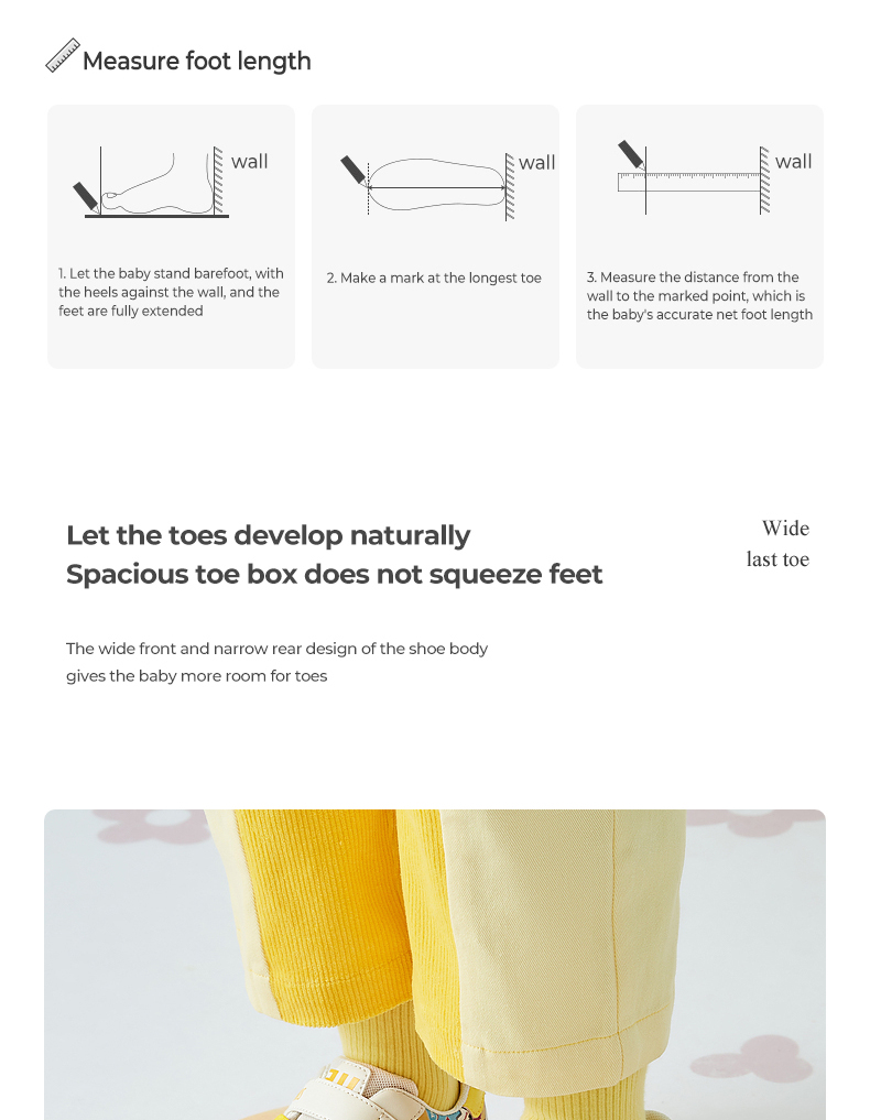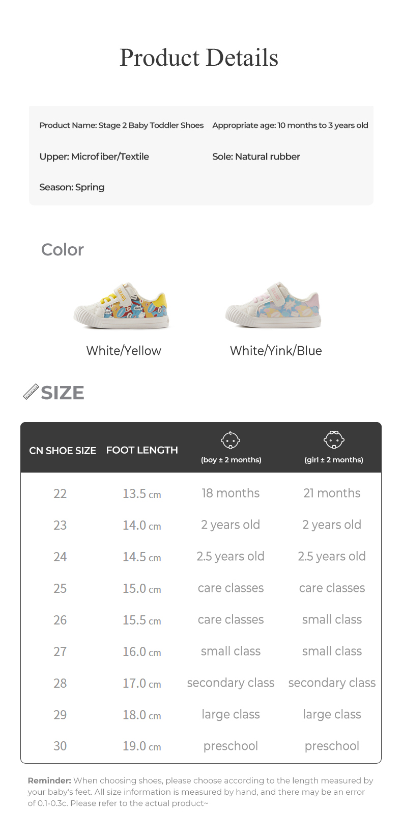 Size: 22 size fits foot length 13.5cm 23 size fits foot length 14.0cm 24 size fits foot length 14.5cm 25 size fits foot length 15.0cm 26 size fits foot length 15.5cm 27 size fits foot length 16.0cm 28 size fits foot length 17.0cm 29 size fits foot length 18.0cm Size 30 fits Foot Length 19.0cm